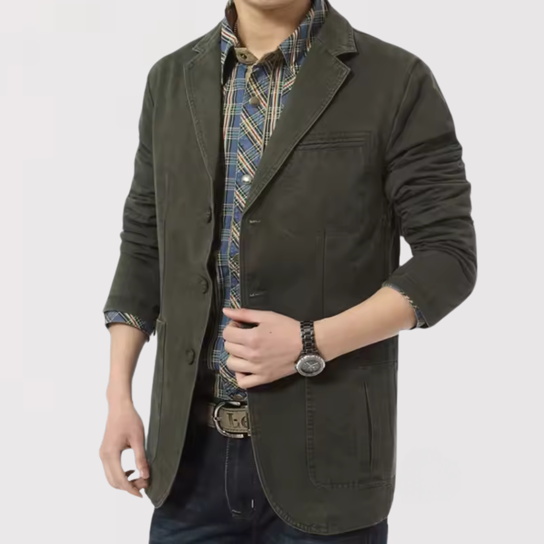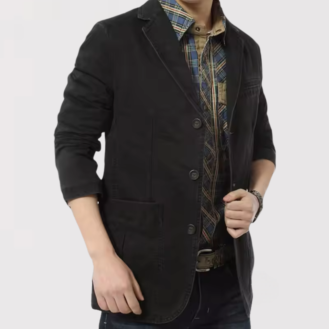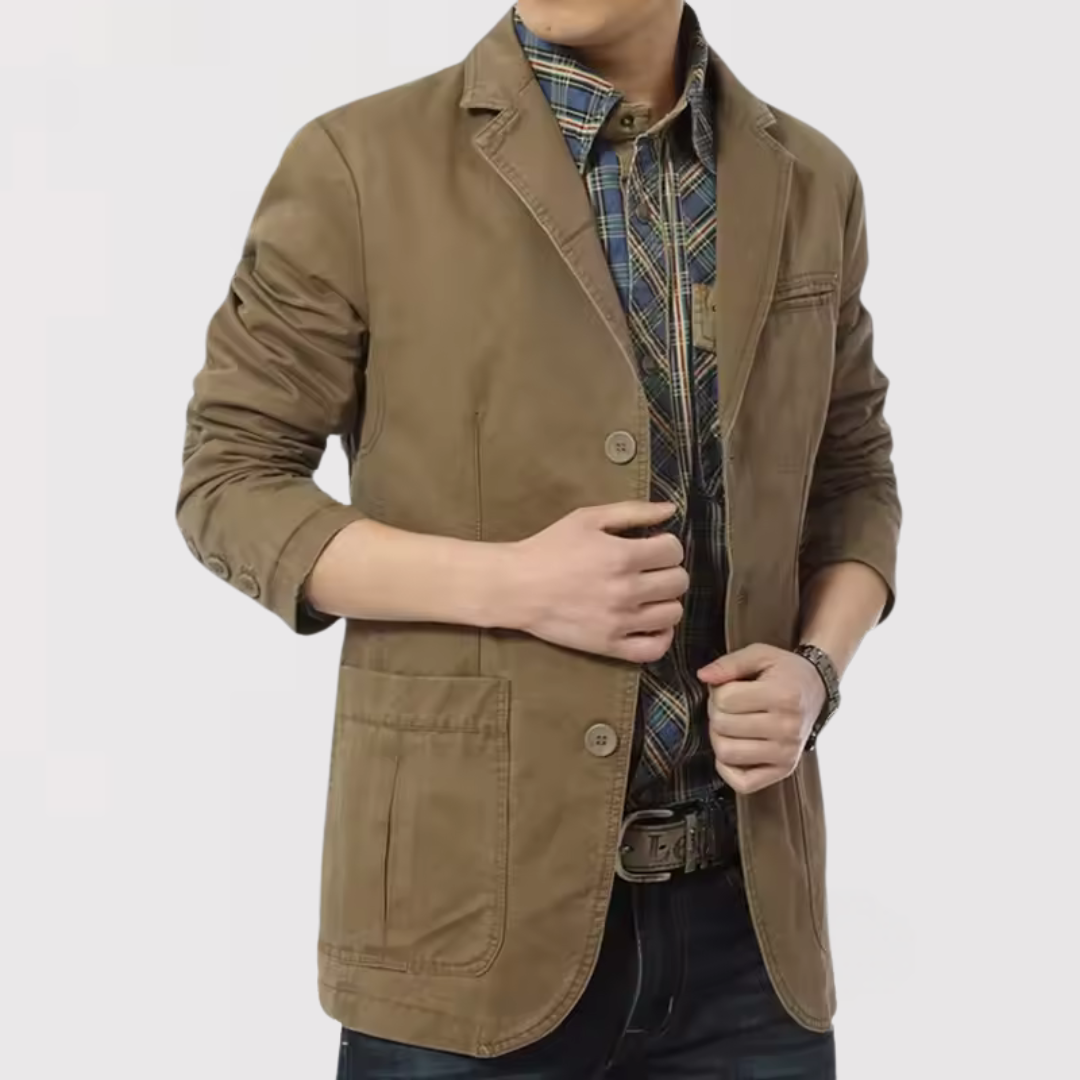 ビジネスにもプライベートにもぴったりな、着回し力の高いクラシックブレザー。通気性のあるコットン素材で、一日中快適に着られます。