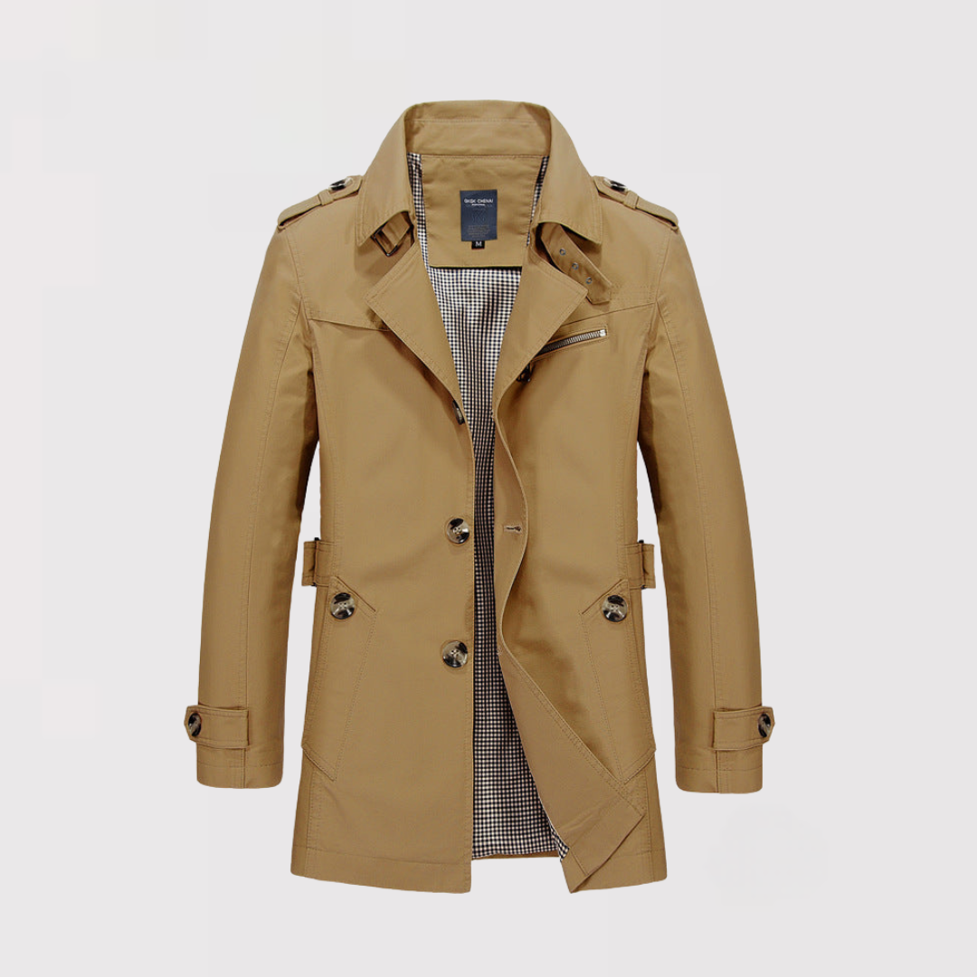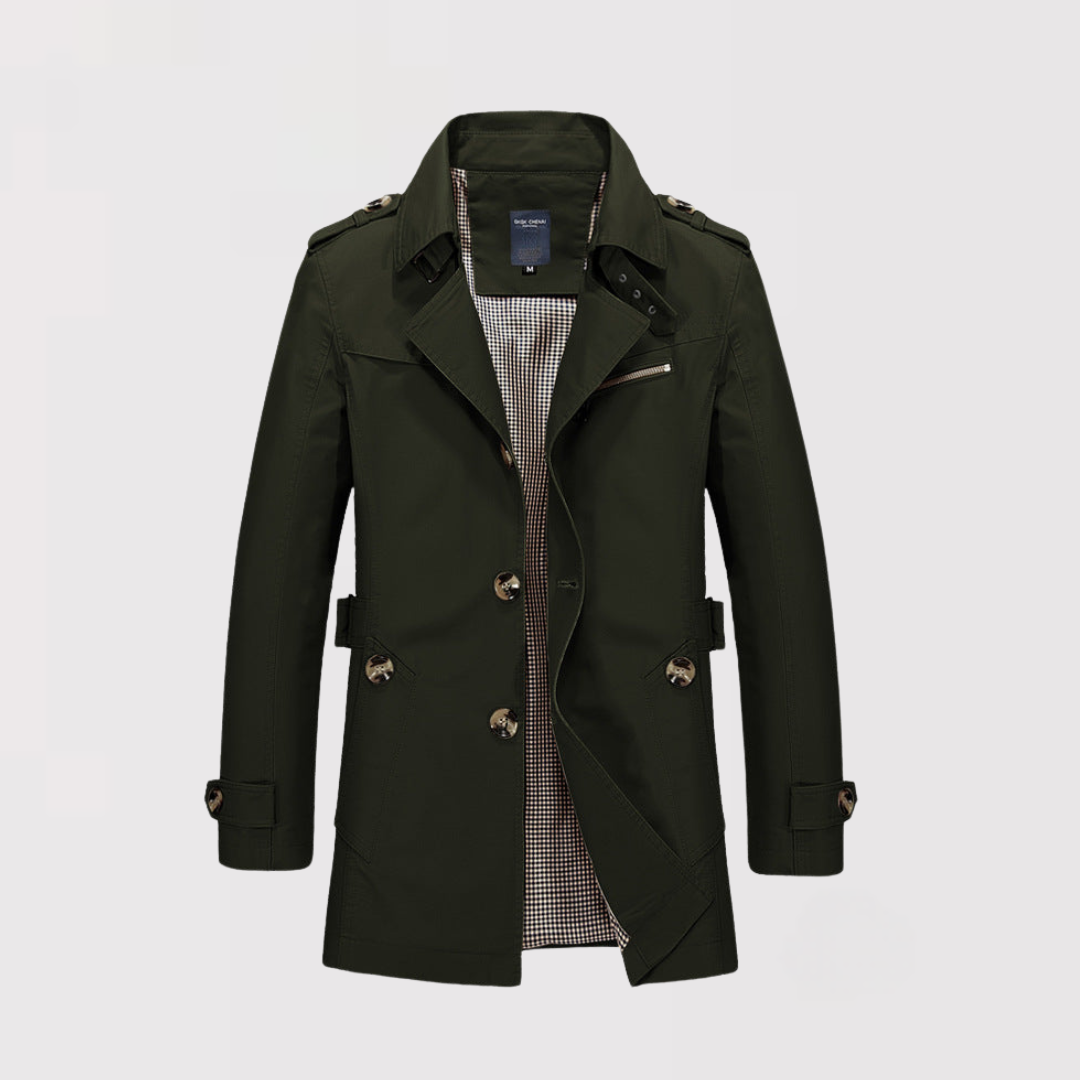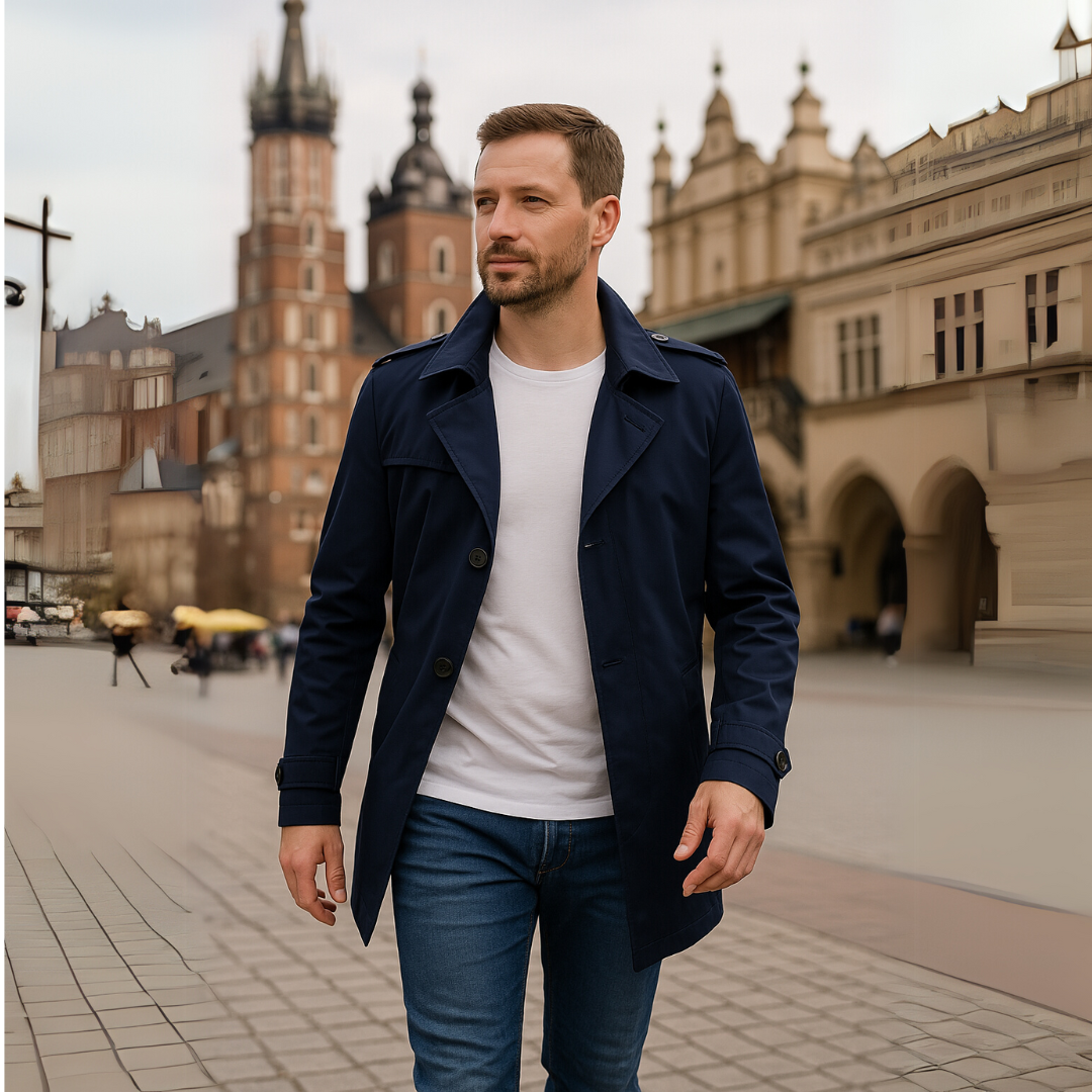 ジョン コットンコート – クラシックなエレガンスと日常の快適さを兼ね備えた一着。季節の変わり目に最適で、フォーマルにもカジュアルにも美しく調和する万能デザインです。