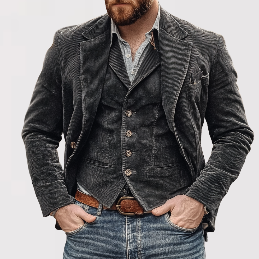 VICENTE(ヴィセンテ)は、タイムレスなスタイルと現代的な快適さを融合させたクラシックの最高峰。レトロな雰囲気にインスパイアされたこのエレガントなブレザーセットは、洗練されたファッションを好む男性に最適です。フォーマルな場面にも、スマートカジュアルなコーデにもぴったりの一着です。