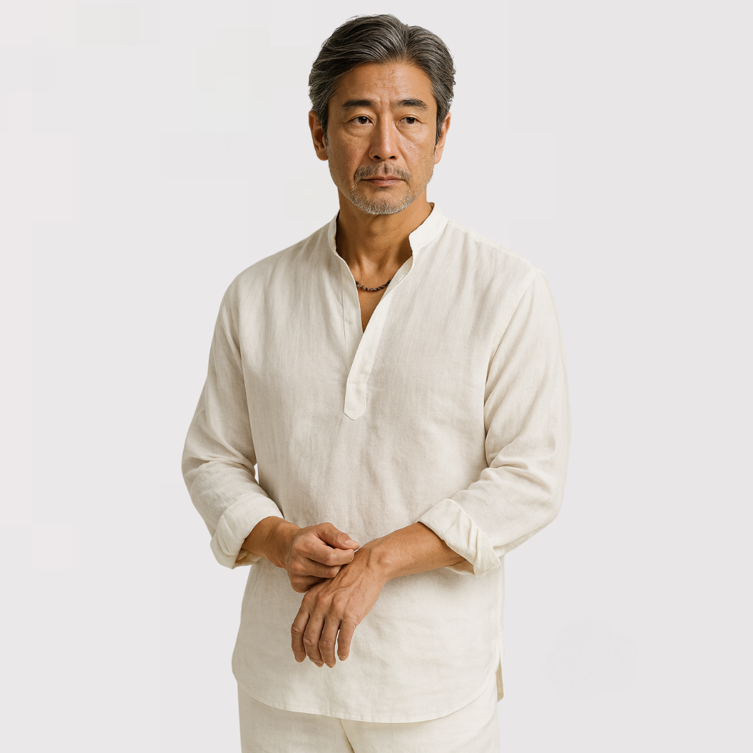軽くて通気性のあるリネン素材で、一日中快適に過ごせます。