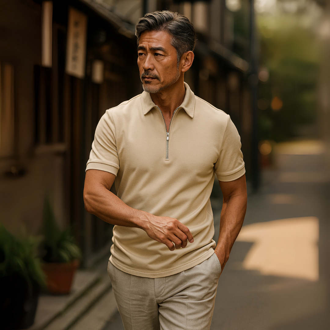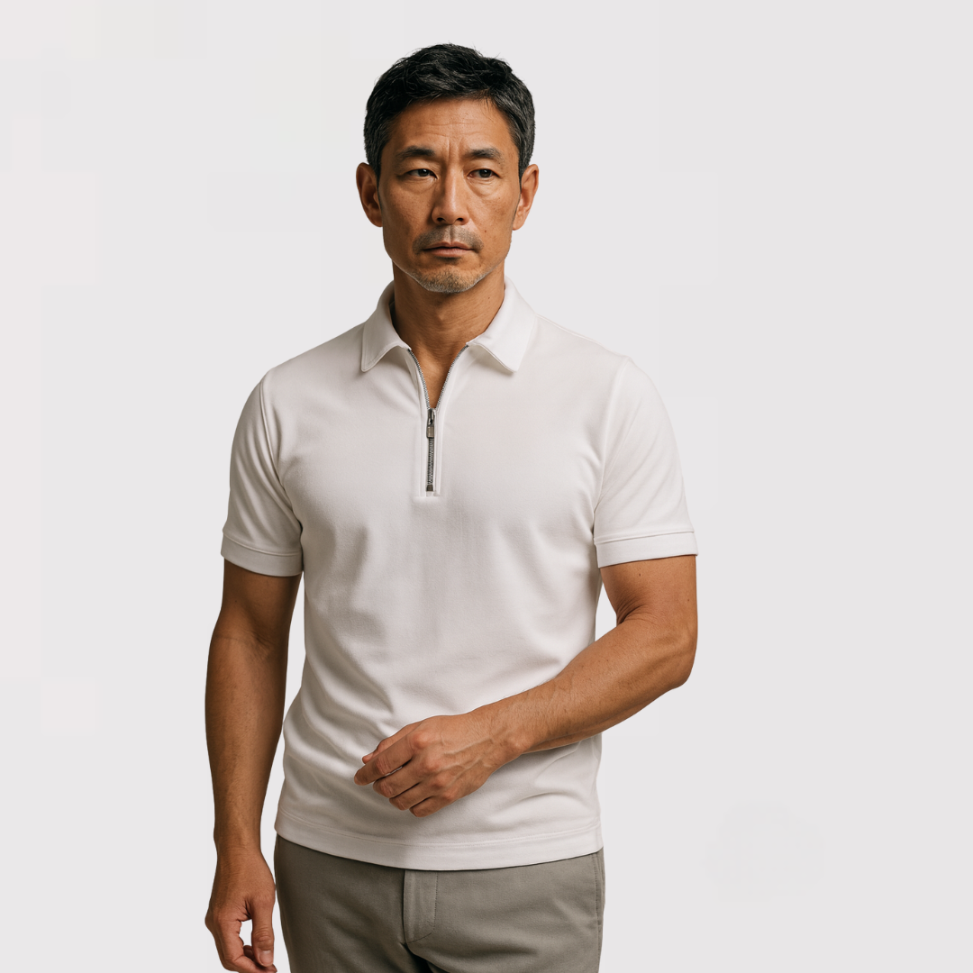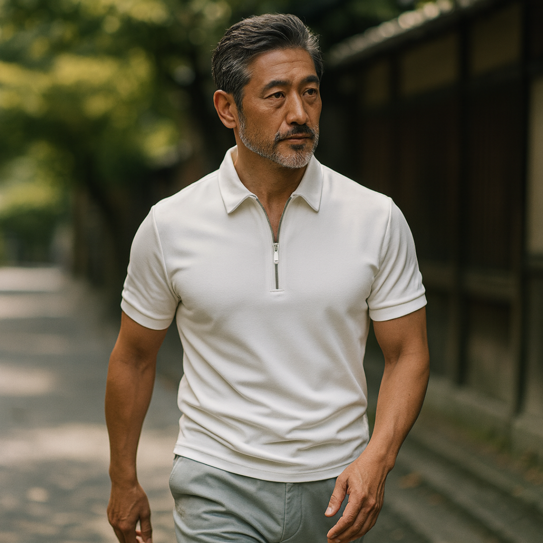 手軽にフレッシュでスタイリッシュな印象を手に入れたいなら、モダンポロシャツが最適。ビジネスにもカジュアルな集まりにもぴったりです。