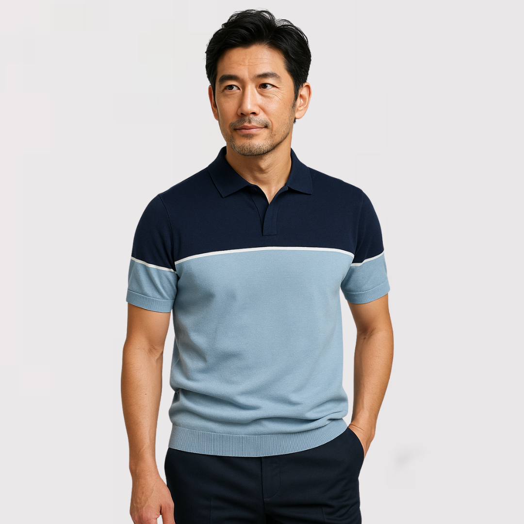 こちらのツートーンポロは、洗練された印象を与えながらも、抜群の着心地を実現。