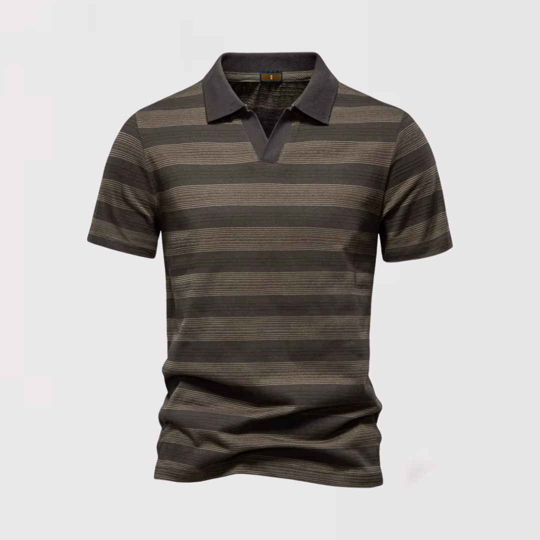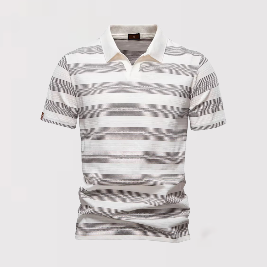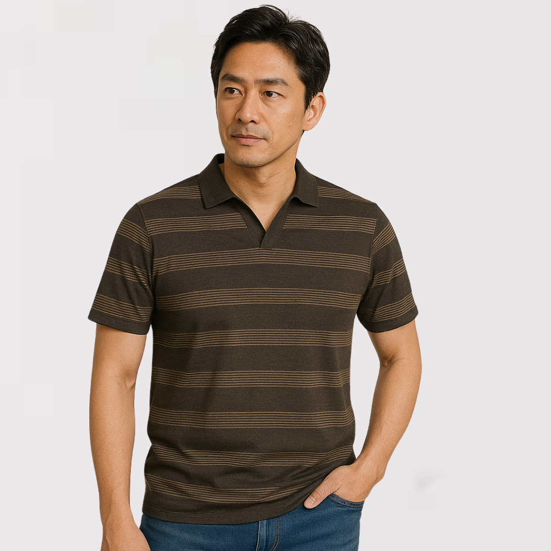 こちらのサマーポロは、通気性に優れたコットン素材で、汗ばむ季節も快適に。