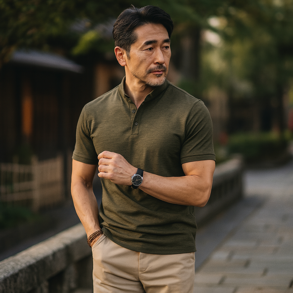 気軽なのにきちんと見える – カジュアルヘンリーポロシャツ
